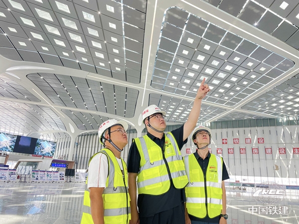若采用常規(guī)方案,光安裝環(huán)節(jié)就要耗時(shí)3個(gè)月,且精度無(wú)法保證,許斌和團(tuán)隊(duì)提前策劃,先后進(jìn)行6版深化方案、12次專題論證,并創(chuàng)新采用裝配式模塊化安裝技術(shù),在地面上制作拼裝平臺(tái),將4塊菱形板組裝成一個(gè)單元板塊,再整體吊運(yùn)安裝,這種“化零為整”的安裝方式,讓施工速度與精度都大幅提高。高峰期,現(xiàn)場(chǎng)80余臺(tái)高空作業(yè)車與200名建設(shè)者同時(shí)開工,僅用時(shí)1個(gè)月便完成了全部吊頂?shù)陌惭b。如今,置身候車大廳,無(wú)論從哪個(gè)方向看,天花吊頂都實(shí)現(xiàn)了連續(xù)多曲,且拼縫誤差不超過(guò)1毫米。