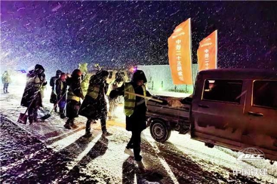 湖北片區(qū)項目群建設(shè)者連夜鏟雪除冰(項目 供圖)